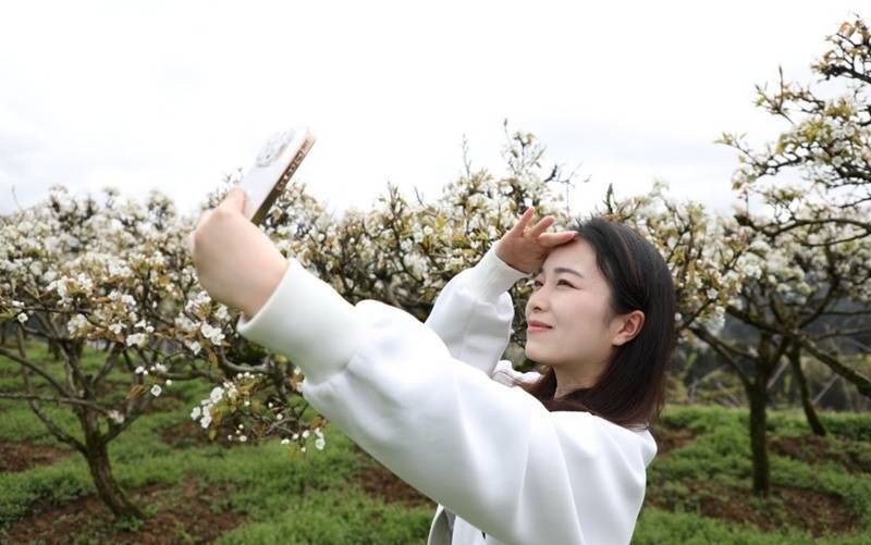 “走进黑水桃梨欢喜园就被惊艳到了。满树的梨花洁白如雪,空气里都是甜甜的花香,漫步在花海里,心情瞬间变好,这才是春天的正确打开方式呀。”游客杨琴松笑着说。